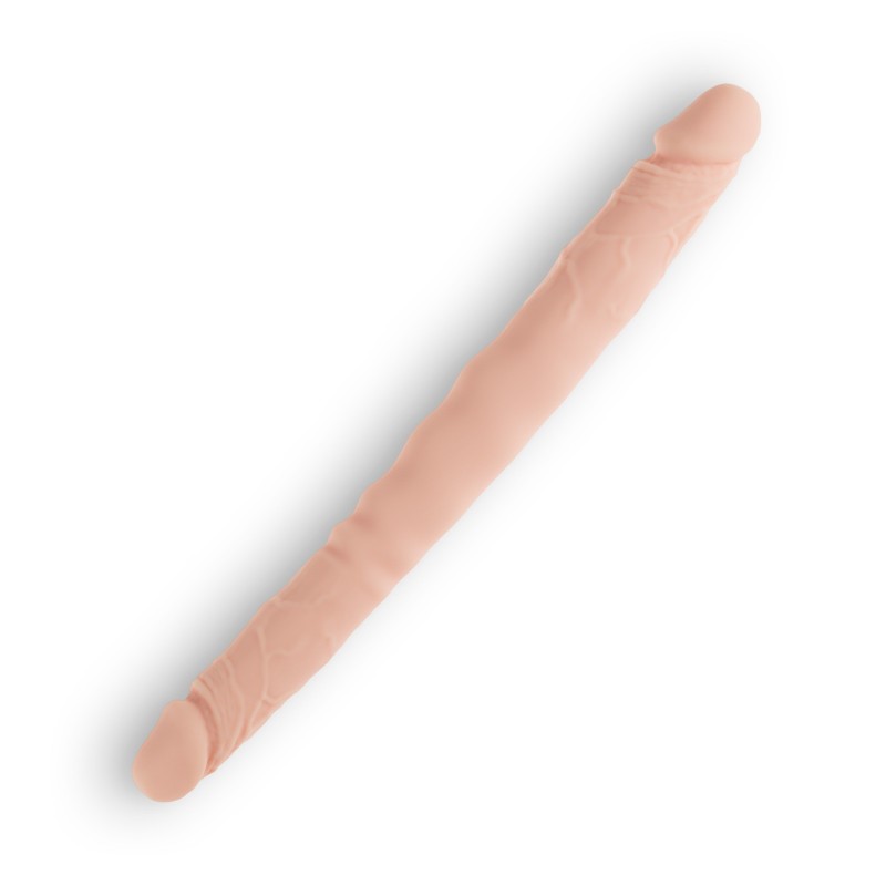Agora poderá também experimentar uma satisfação intensa. Incrivelmente realista, com um tamanho ideal para quem busca sensações fortes! Com glande e veias realistas. Concebido em silicone (100%) com acabamento aveludado, este dildo duplo vai apurar a sua imaginação. Para uso vaginal e anal. Não possui ftalatos.