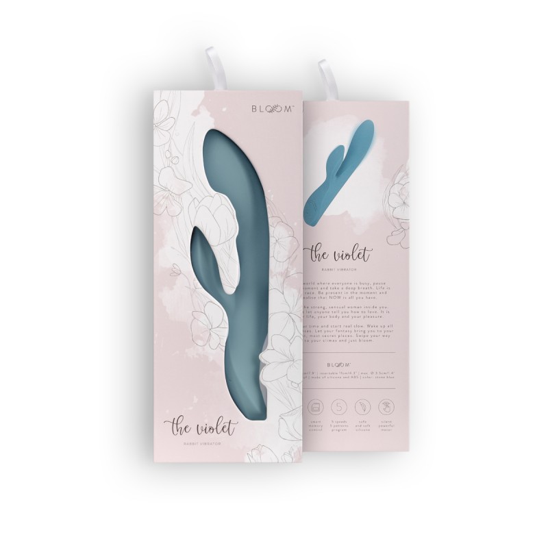O Violet Rabbit é um vibrador coelho estiloso da elegante coleção Bloom. Possui tecnologia de deslizamento exclusiva, que facilita a configuração do vibrador da maneira que mais gostar. Funciona assim: ligue as vibrações e escolha o seu padrão favorito pressionando o botão na pega. Em seguida, deslize o polegar para a esquerda ou direita pelas folhas para aumentar ou diminuir a velocidade da vibração. Existem 5 padrões diferentes e 5 velocidades por padrão. O Violet é feito de silicone aveludado, por isso é fantástico para a sua pele. Também é à prova de salpicos, para que possa usá-lo no chuveiro e é fácil carregar com o cabo USB incluído. O Violet vem com ótimos extras, como uma venda para os olhos e uma bolsa para brinquedos. Ele também vem com um extenso manual que explica como operar e usá-lo, além de dicas para limpar e manter o vibrador.