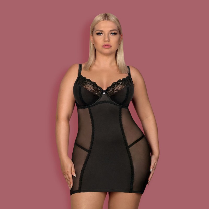 CAMISA DE NOITE E TANGA AMALLIE TAMANHO QUEEN OBSESSIVE PRETA
