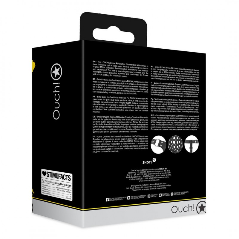 Eleve a submissão e o controlo a um novo nível com o Cinto de Castidade em couro PU OUCH! Xtreme.