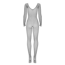 Explore your night and seduce with this crotchless bodystocking. All made in fishnet, with lace flower pattern all over.