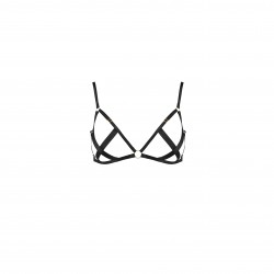Sutiã triangular de copa aberta em preto, com alças para o pescoço e fitas ajustáveis, que proporcionam conforto,...