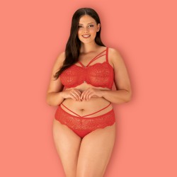 Um corpete e uma tanga sensuais, com renda e tule, alças ajustáveis e fitas para meias de liga, para um ajuste...