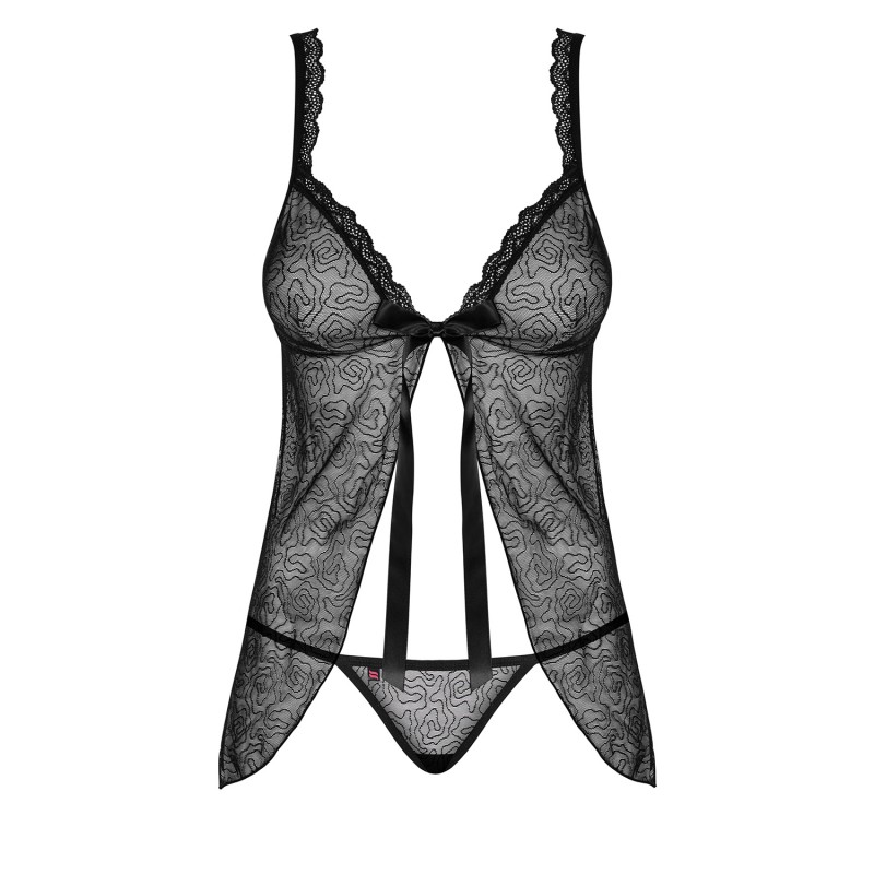 OBSESSIVE 877-BAB CHEMISE AND THONG BLACK