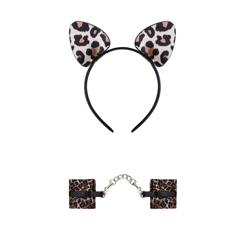 Wow, what a kitten! Now you can enjoy the tempting leopard print that will warm you up this evening. Be extremely predatory and feel sexy with the Tigerlla set, which will give you confidence in a flirty, but tempting style. Emphasize your character and look sensual wearing this headband and handcuffs accompanied by intriguingly obsessive lingerie!