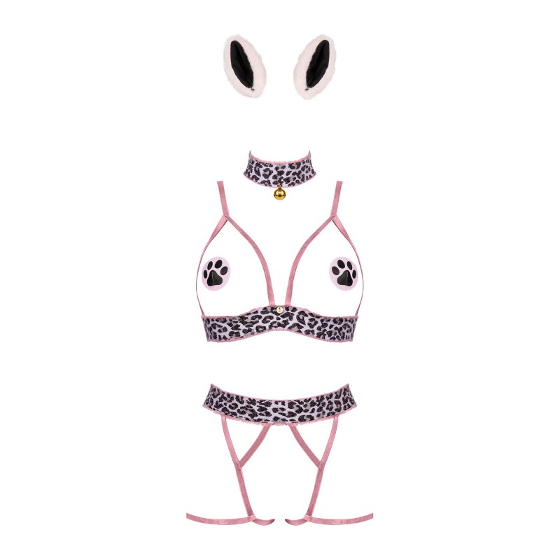 Oh, you really must be in the mood for some naughty games now that you've found this super playful kitty costume! The open bra and panties are a very spicy recommendation for lovers of love play, and the tempting accessories in the form of nipple covers, a choker and cute ears will only turn up the atmosphere in the bedroom! Go crazy and add Catriny to your sexy lingerie collection today!Â