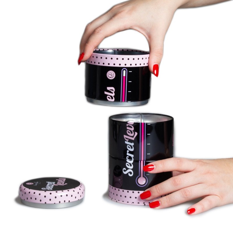 The game consists of 3 round tins and each one corresponds to a level of intensity.