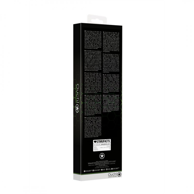 Immerse yourself in an intense sensory experience with the Ouch! Glow in the Dark flogger, where pleasure and bondage aesthetics merge in a daring and irresistible creation.