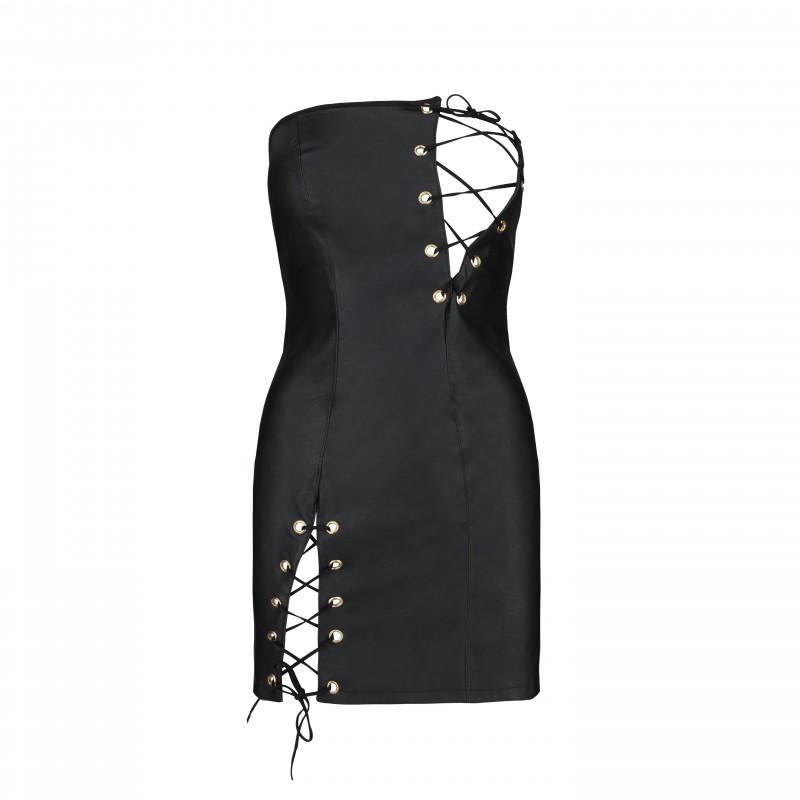 Made from high quality synthetic leather, it has a fitted design that emphasises the natural curves of the body. The delicate front laces add a seductive touch and allow for a personalised fit, guaranteeing comfort and style.