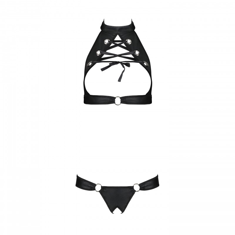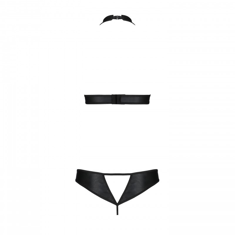 The thong, which matches the top, has an opening between the legs and is adorned with two golden rings that intensify the sensuality. At the back, the daring cut-out adds a sexy and seductive touch.