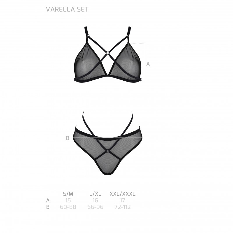 The Varella set is the ideal lingerie for bold, confident women. The versatility of the decorative straps makes it perfect for both special occasions and everyday wear.