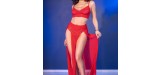 Red top + skirt with golden accessories + string