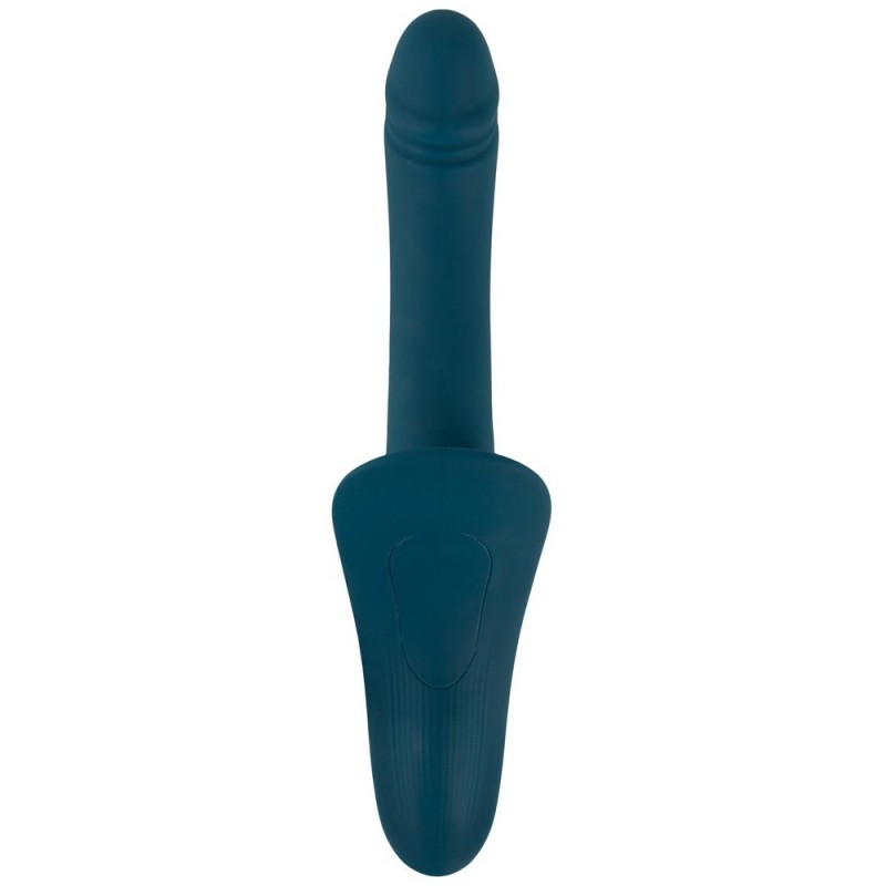 The sophisticated vibrator stands out because of its 2 motors and their vibrations, which pleasure both the active and passive person. The active person can enjoy the wonderfully anatomical shaped lay-on part, which curves around the vulva and clitoris. The passive person can enjoy the wonderfully curved vibrator shaft with its textured glans. The 7 vibration modes can be controlled via the toy or even more comfortably via the remote control (range: 8 m). The vibrator can be easily removed from the ring on the strap-on harness.