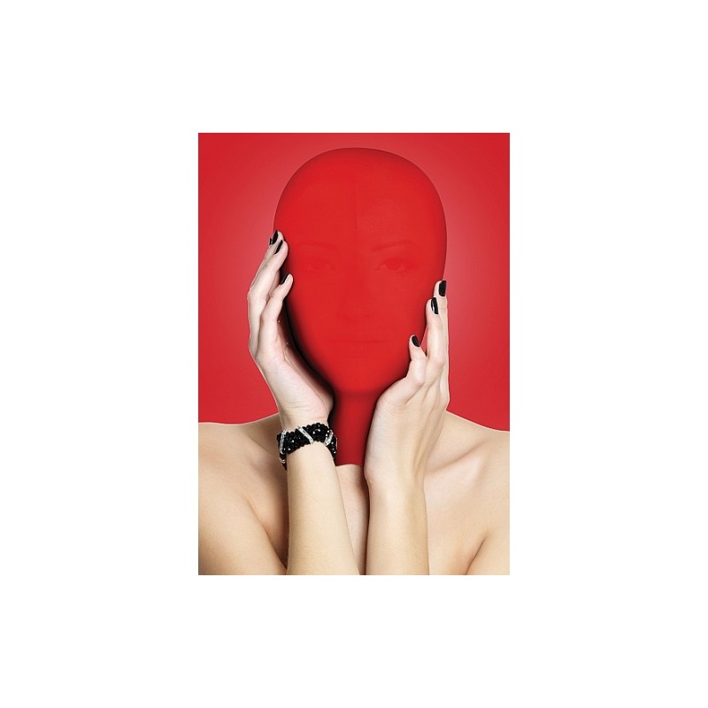 This comfortable Subjugation mask is designed to stretch completely over the head and closes easily at the back with a zipper. The fabric allows just a hint of light in while impairing vision and awakening other senses. The shiny hood can be worn by him or her, and the thin lightweight fabric allows breathing and hearing a snap.