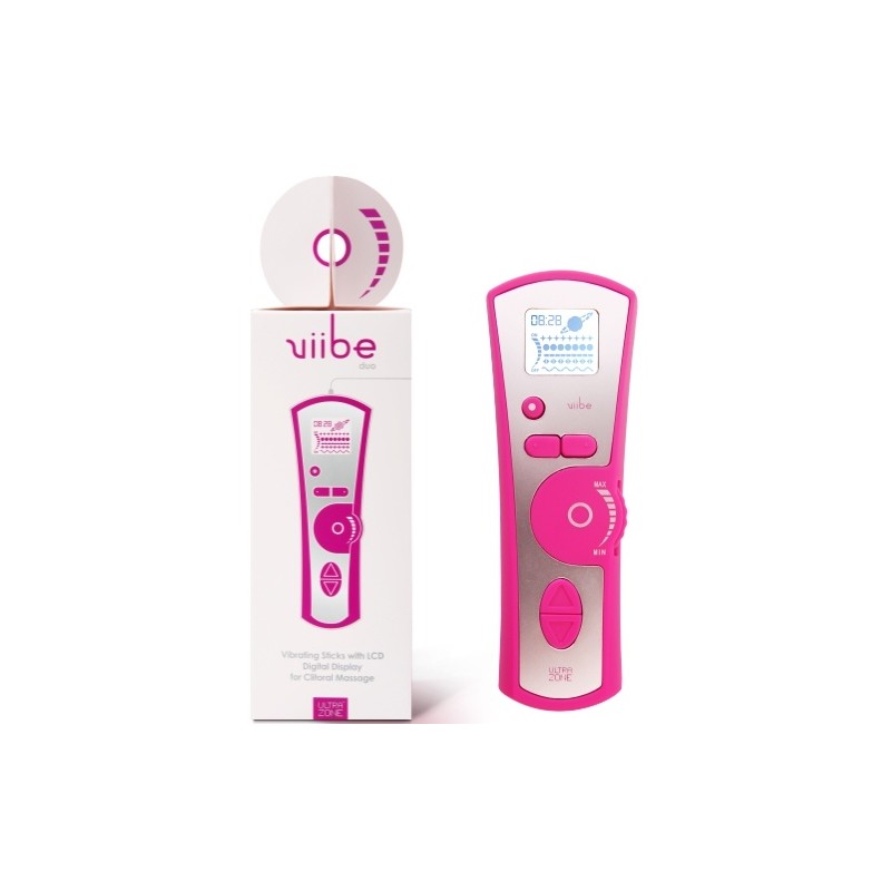 VIIBE features two interchangeable mini bullet vibrators and one controller with screen in which you can activate and change vibration speeds and patterns. Playful and pink, you can choose between the two bullets included. One is long with a knobby end and the other bullet is shorter with a curved end that stimulates your G-spot. On the controller you can choose between the 6 vibration speeds and 5 different modes, or you can also select the auto frequency. The options are endless!