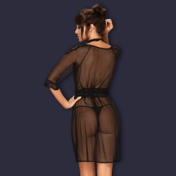 Sophisticated peignoir in black made from a combination of tulle and lace. The whole is finished with satin ribbons....
