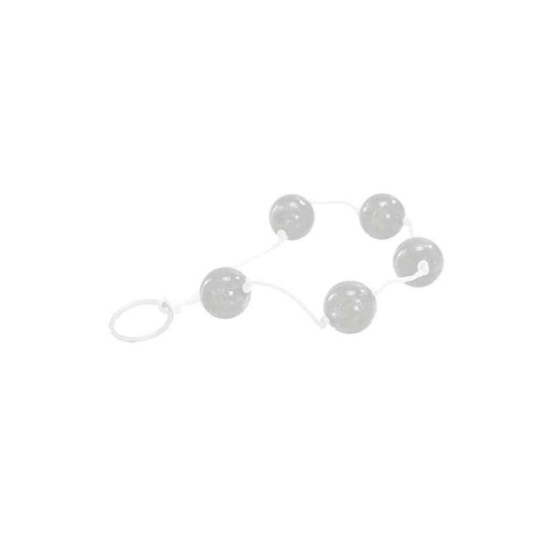 The JAMMY JELLY ANAL LOVE BALLS toy includes 5 anal balls with an elegant design, supported by a soft and thin cord.