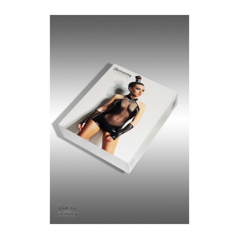 A body with wet effect, transparent details and metallic chains. It has backless design and a shorts effect. Includes matching gloves. For you to have an even more irresistible look. A high quality product from Demoniq.