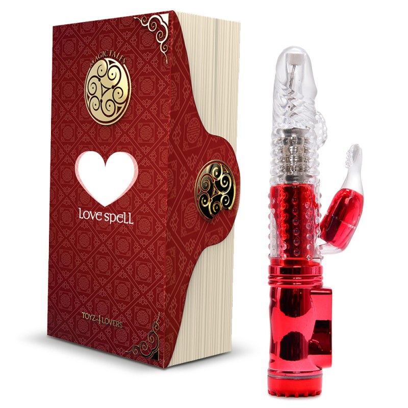 The MAGIC TALES line of vibrators presents multifunction rabbits for a 360° woman stimulation. This vibrator is equipped with stem rotation, rotation swap function and multi-speed vibration thanks to its double motor. In addition to rows of rotating pearls along the shaft, it's characterized by 12 different type of vibrations in the heart-shaped clitoris stimulator, and a realistic-looking glans tip. It has a special protuberance near the tip for G-spot stimulation. This vibrator is made of waterproof TPR, and it's phthalate-free.
