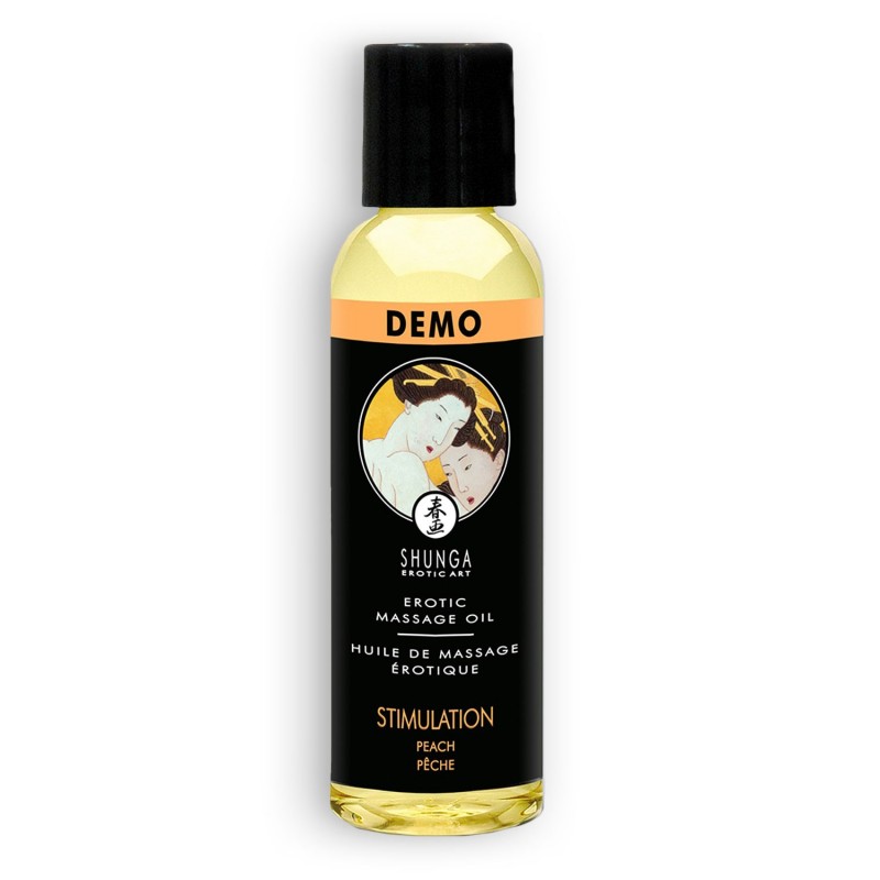 Enjoy the pleasures of giving or receiving a sensual and erotic massage. This oil combines an exclusive mix of almond, grape seed and avocado oils, Vitamin E and Ylang Ylang extracts. All its characteristics make it slide smoothly and easily through your skin. Stimulation has got an incredible peach fragrance and will make your senses reach the peak of pleasure. Used by professional masseuses. Condom safe. Non edible. Â