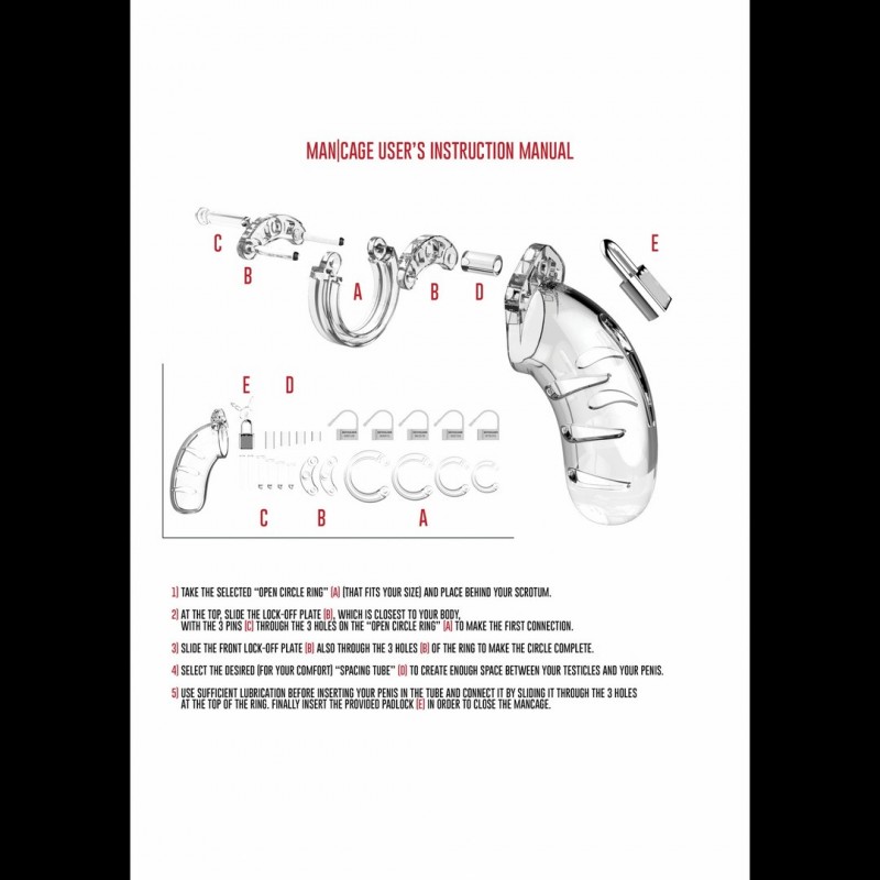 MAN CAGE es la elección ideal para sujetar un pene travieso. Hecha en material de alta calidad y hipoalergenica. ¡Esconda la llave para dominio total! Domine o sea dominado. Libre de ftalatos y a prueba de agua. Posee aperturas para circulación del aire y permite orinar sin quitarla. Esta jaula se ajusta al pene a través de los anillos incluidos, elija el que mejor se adapta a usted y garantice la mejor erección de siempre al quitarla.