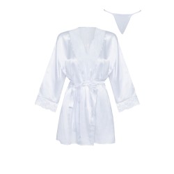 Elegante, cómoda y sexy bata de color blanco, confeccionada en satén y encaje. La bata tiene mangas largas ribeteadas...