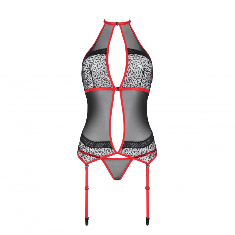 El corsé Satara combina sensualidad y elegancia con delicados encajes y suave tul, que realzan la silueta femenina. Disponible en negro y rojo, ofrece un confort y una sofisticación inigualables.