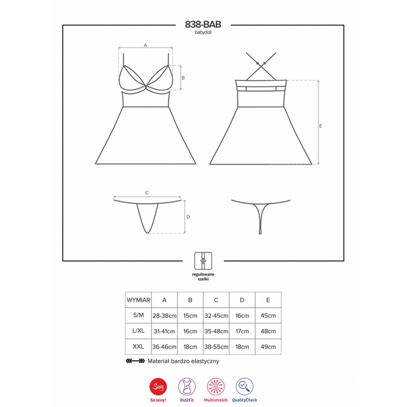 Siéntase irresistiblemente romántica con esta original picardía con tanga a juego. Hecha en encaje elastico, con bordado floral con pendientes brillantes. Vista sensualidad y originalidad, dejándolo loco de deseo. Este producto es de la marca OBSESSIVE, una marca líder, llena de erotismo y sensualidad con modelos únicos que enaltecen aún más el cuerpo de las mujeres.