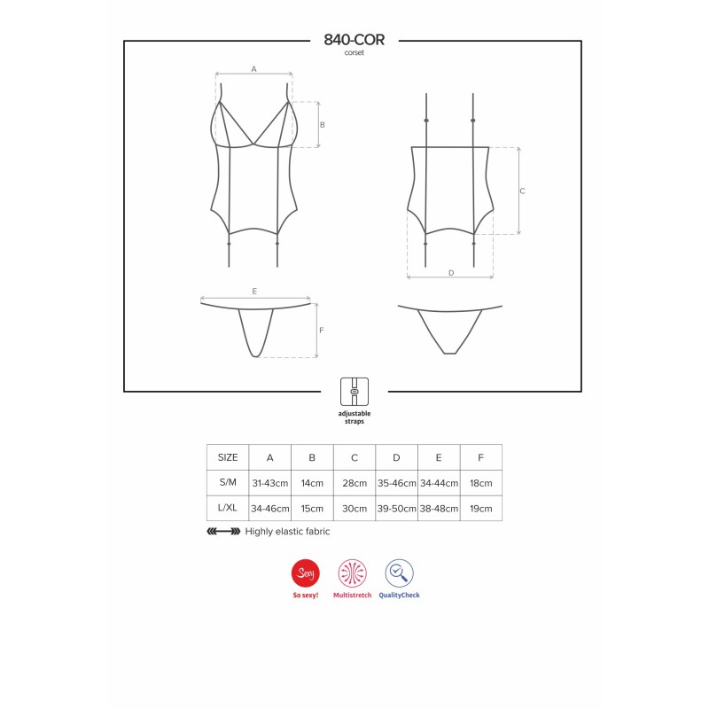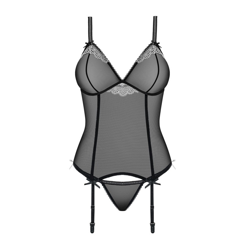 Explore su noche y seduzca con este sensual y bello corpete. Hecho en suave micro red y adornado con detalles bordados en blanco, incluye tanga y ligueros a juego. Este producto es de la marca OBSESSIVE, una marca líder, llena de erotismo y sensualidad con modelos únicos que enaltecen aún más el cuerpo de las mujeres.