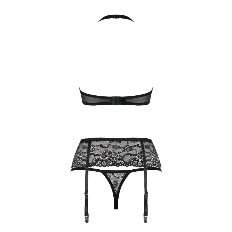 - Artículos en este conjunto: sujetador, liguero y tanga;