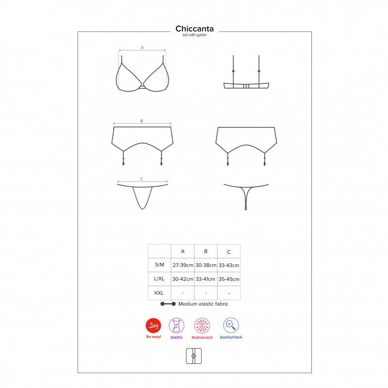 Conozca Chiccanta, un conjunto extremamente sensual. Enamorése a la primera mirada por las decoraciones unicas y encajes elegantes y femeninos. Quede impresionada con el increíble bordado a trás que servirá de brújula hacia el placer.