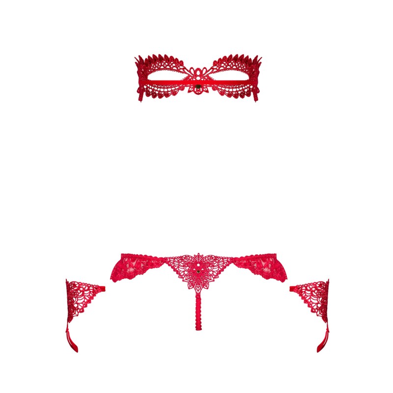 El conjunto Hetea tiene un color jugoso con la suavidad del encaje delicado y decoraciones brillantes. La mascara propociona misterio a sus veladas...