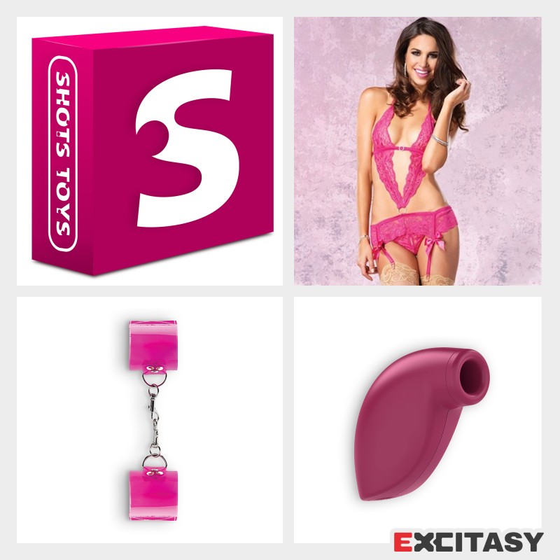 Pack compuesto por seductor y romántico body de encaje, esposas con velcro y estimulador de aire pulsado. Todo presentado en una bella y discreta caja sellada. ¡Perfecto para un regalo sorpresa y una velada muy especial!