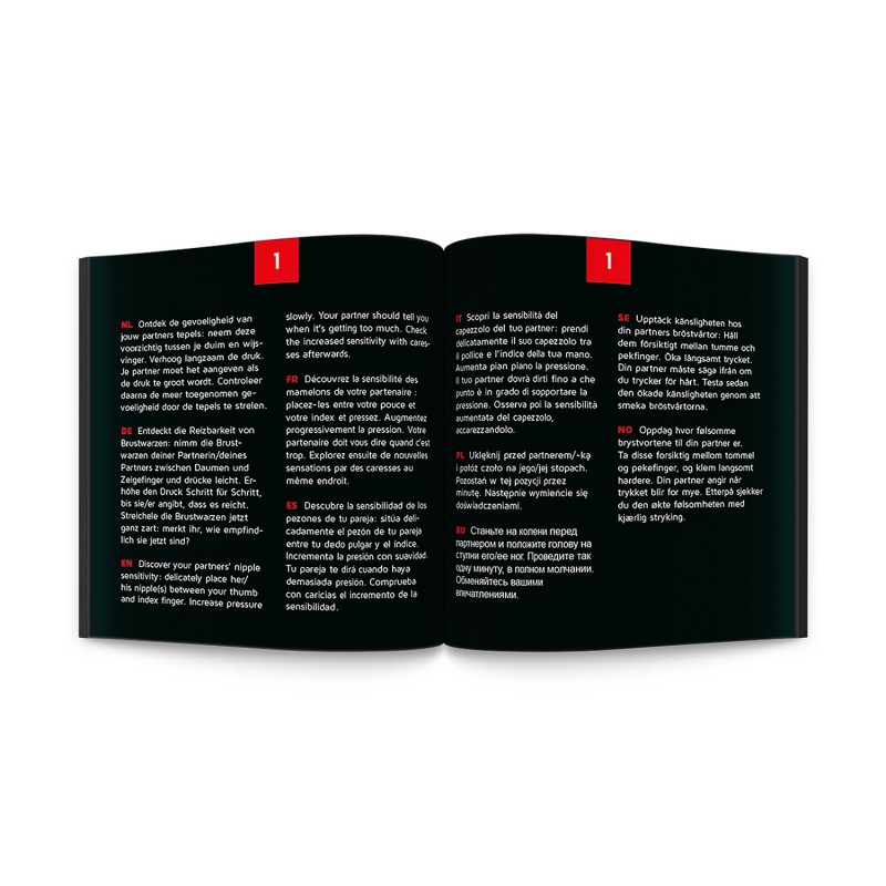 Los 24 desafíos en la edición Kinky están disponibles en 10 idiomas: inglés, español, francés, alemán, holandés, polaco, ruso, italiano, sueco y noruego y añadirá un cambio excitante a su vida. Una fantasía secreta realizada o nuevas sensaciones descubiertas? ¿Una fantasía secreta cumplida o nuevas sensaciones exploradas? Descubra sus límites, amplíe sus horizontes y disfrute de su intimidad. ¿Es lo suficientemente traviesa como para arriesgarse?