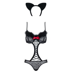 Incluye un sensual y revelador body con tirantes ajustables y patrón de leopardo, y un contorno del escote y cola en...