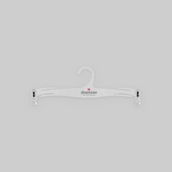 Una percha transparente con dos muelles y dos ganchos.