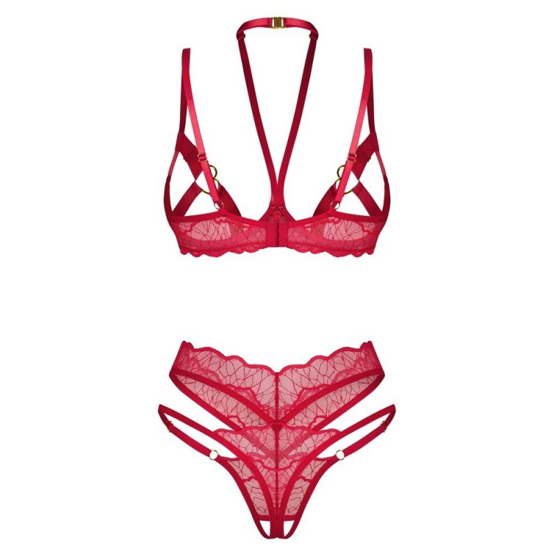 Sorprendente atractivo en un color rojo muy sensual! El conjunto sin entrepierna Cupide Desir de Obsessive contiene un sujetador y un tanga.