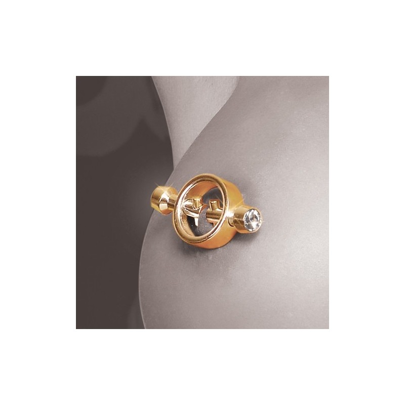 Dale a los "metales preciosos" un significado totalmente nuevo con este lujoso par de pinzas magnéticas para pezones. Estas joyitas doradas son piezas de arte y placer por partes iguales.
