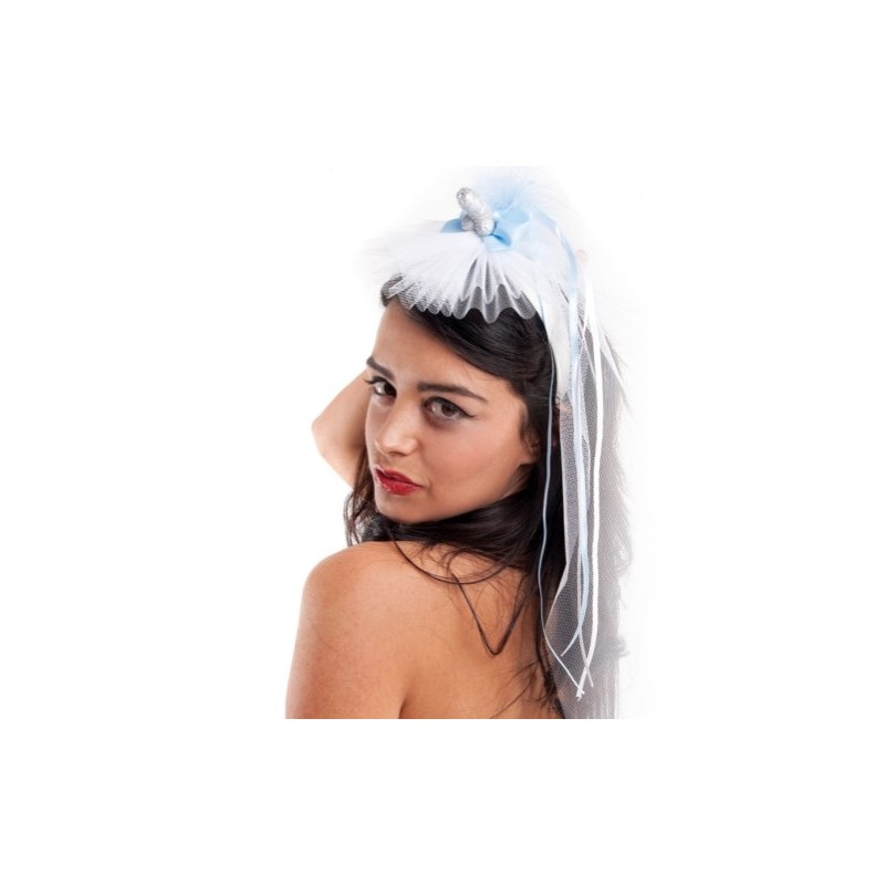 Un fantástico velo blanco para usar en su despedida de soltera. El velo de tul tiene un pene en el topo decorado con purpurinas. Sin lugar a dudas es el complemento perfecto para su última noche como soltera.