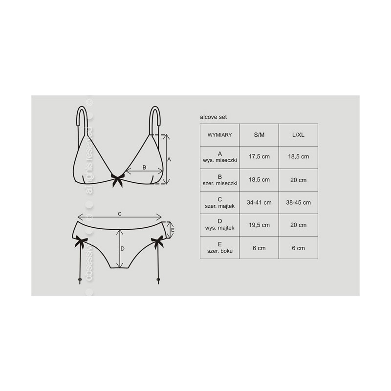 Explore su noche y seduzca con este conjunto que va a dejarla irresistible. Es simples, pero se destaca por su elegancia. En tonalidad de rosa, con pequeños pormenores en volantes negros. El dogma femenino de la seducción, con el contraste satinado del rosa en su piel. Sujetador sin aros, estilo bikini de atar al cuello y en la espalda, con un lazo al centro del escote. Disfrute de la sofisticación de la braguita que tiene liguero incorporado y un lazo al inicio de cada una, o sea, cuatro. En la trasera de la braguita tiene una pequeña abertura circular con un lazo muy pequeño, también negro. Contorno en volantes negros. Vista sensualidad y originalidad, dejándolo loco de deseo. Este producto es de la marca OBSESSIVE, una marca líder, llena de erotismo y sensualidad con modelos únicos que enaltecen aún más el cuerpo de las mujeres.