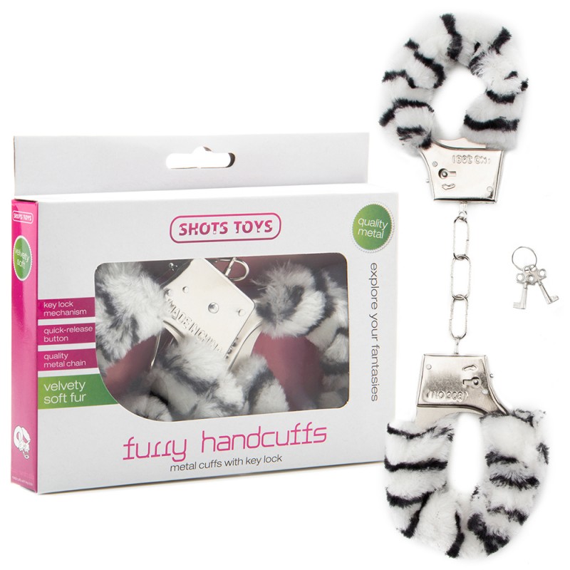 Unas sensuales esposas con peluche, para explorar los placeres del amor bondage con un toque de elegancia! El mecanismo de bloqueo tiene un botón de liberación rápida en caso se pierdan las dos llaves. Juegue y espose su amante con las sensuales esposas FURRY HANDCUFFS!