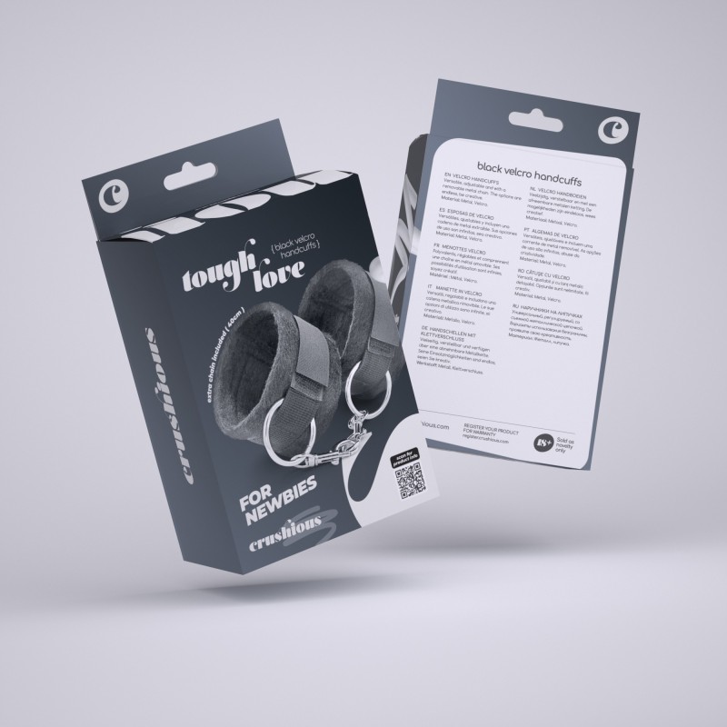 MENOTTES DE VELCRO TOUGH LOVE AVEC CHAINE DE 40CM SUPPLÉMENTAIRE CRUSHIOUS NOIRES