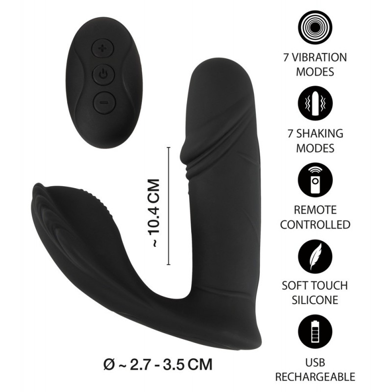 The 7 shaking modes and 7 vibration modes can be controlled separately via the remote control. The modes can be easily adjusted with the button on the remote control. The remote control has a range of 10 meters which means that a partner can use it as well. The anatomically shaped Panty Vibrator is worn in panties and can pleasure the vagina and clitoris discreetly and at the same time – nobody else will know that it's being worn!