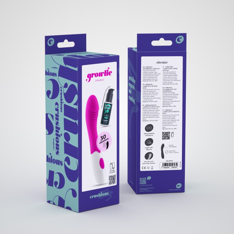 VIBROMASSEUR GROWLIE AVEC LUBRIFIANT À BASE D’EAU CRUSHIOUS