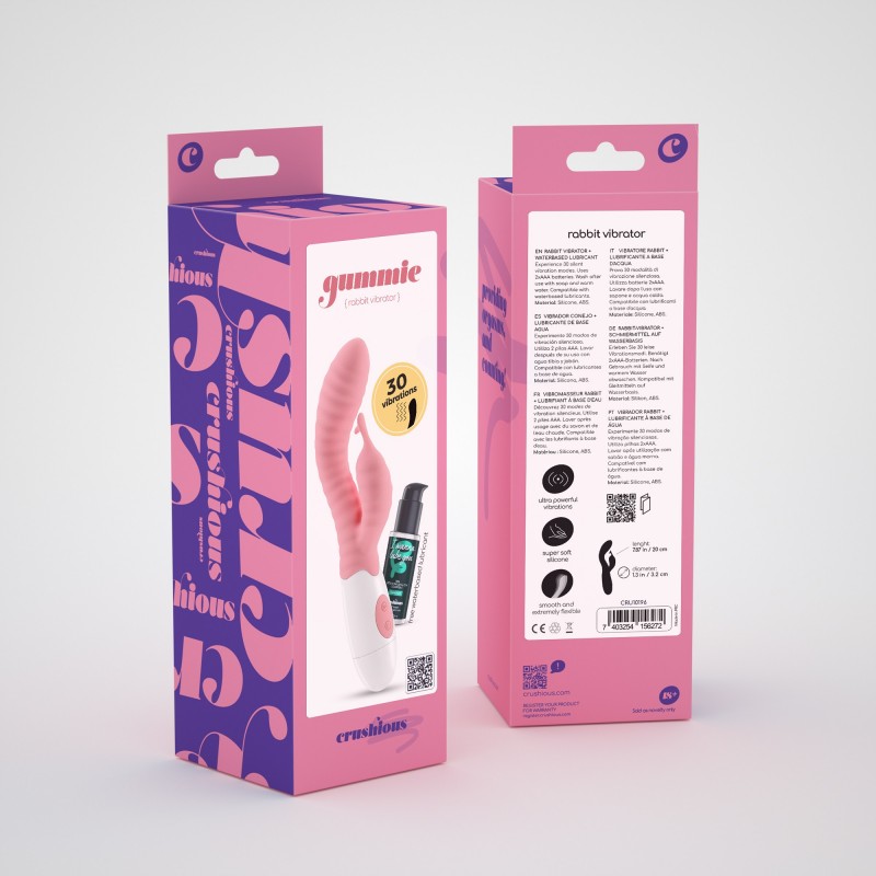 VIBROMASSEUR RABBIT GUMMIE ROSE ET LUBRIFIANT À BASE D’EAU INCLUS CRUSHIOUS