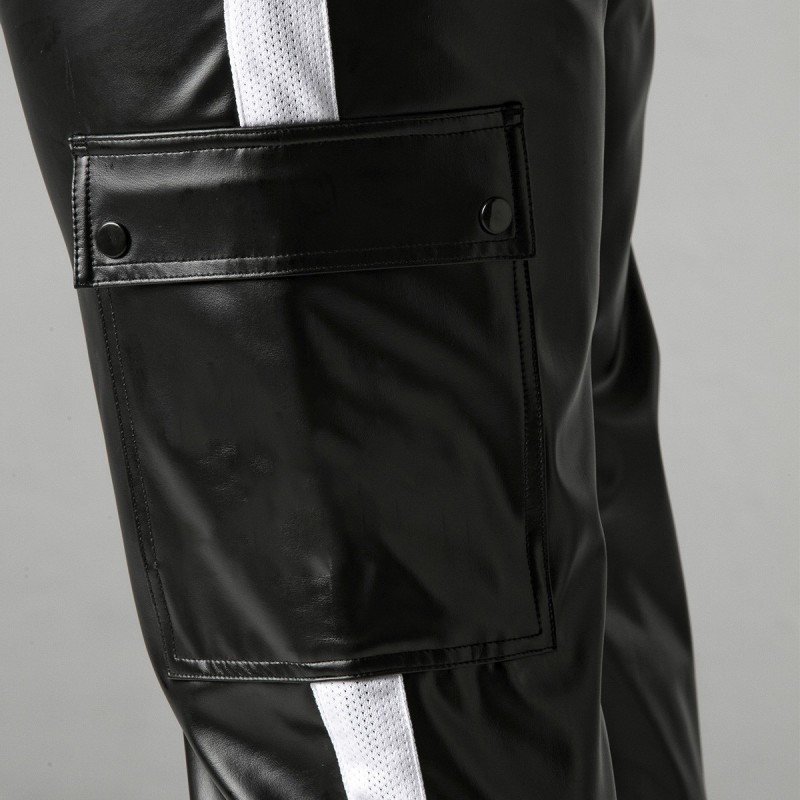 Cargo pant with a back zipper opening made of the finest leatherette fabric.