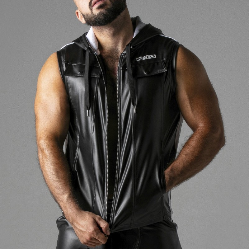 Sweat à capuche sans manches, fabriqué dans le meilleur tissu stretch en similicuir.