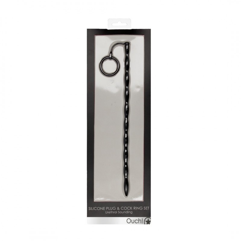 SONDE D'URÈTRE AVEC ANNEAU PÉNIEN EN SILICONE NOIR OUCH!
