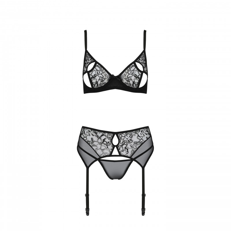 L'ensemble PrÃmula se compose de trois pièces irrésistibles: un soutien-gorge, un délicat string et un porte-jarretelles qui s'adapte parfaitement au corps tout en conservant l'harmonie du design.