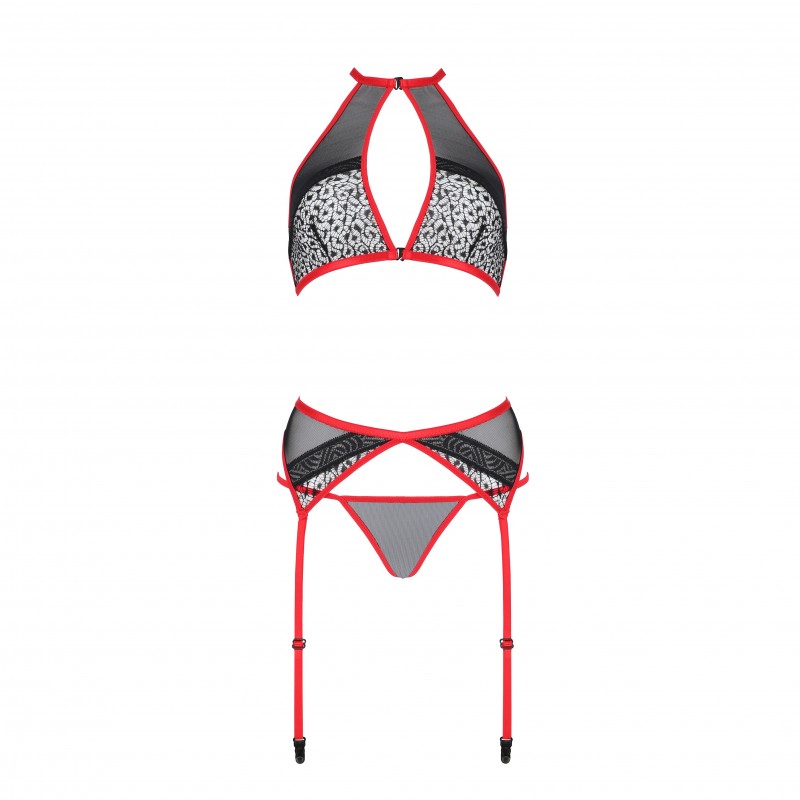 L'ensemble Satara, composé d'un soutien-gorge, d'un string et d'un porte-jarretelles, est le choix idéal pour celles qui souhaitent une belle lingerie avec une touche irrésistiblement sensuelle.